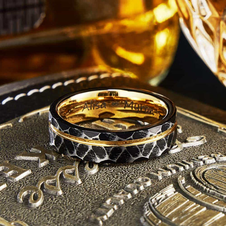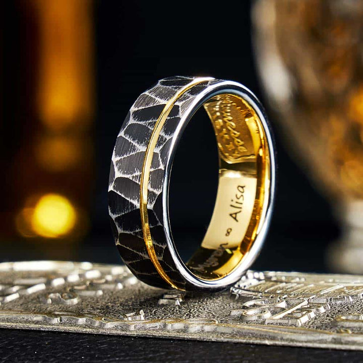 Gehämmerter Wolfram Carbide Ring Gold - Thron