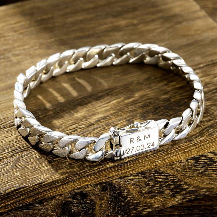 Erleben Sie die Vielseitigkeit dieses Silber Herren Damen Armbands mit Gravur, das sich ideal für besondere Anlässe wie Geburtstage, Jahrestage oder einfach als liebevolle Geste eignet. Das Silber Panzer Armband Herren mit Namen Gravur verleiht jedem Outfit eine besondere Note und ist das perfekte Geschenk für stilbewusste Männer und Frauen. Mit dem personalisierten Männer Frauen Armband mit Gravur setzen Sie elegante Akzente und bewahren zugleich wertvolle Erinnerungen. Dieses Armband kombiniert zeitlosen Stil mit einer persönlichen Note, die jeden Tag zu etwas Besonderem macht.