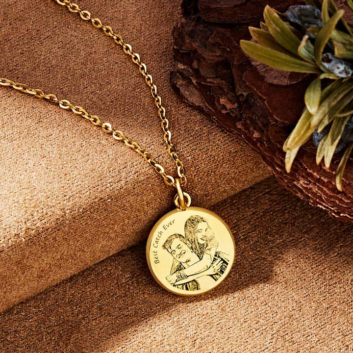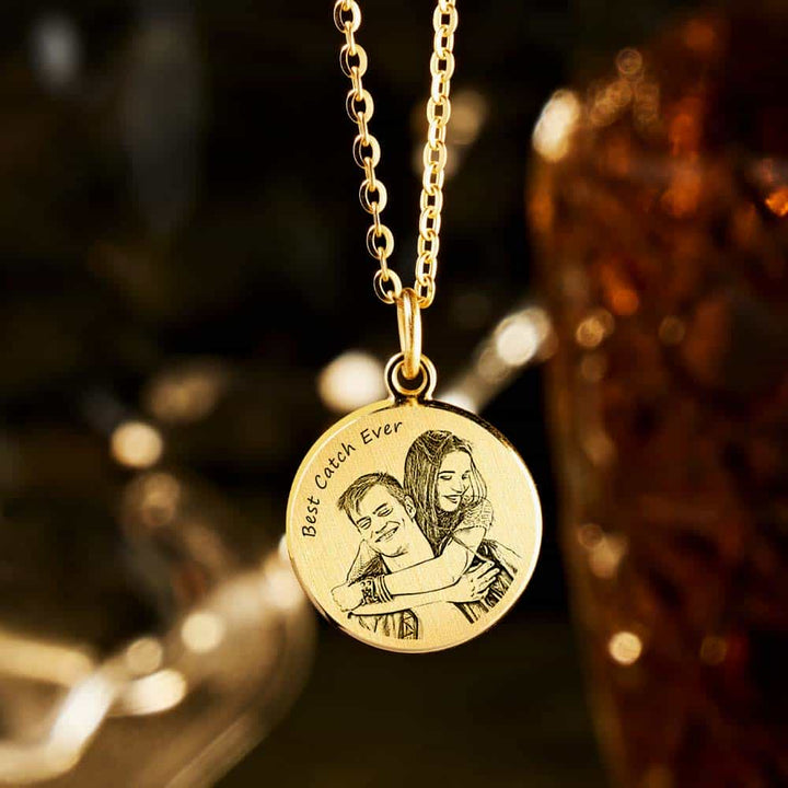 Entdecken Sie die zeitlose Eleganz unserer personalisierten Skizzen Foto Kette, die Ihre schönsten Erinnerungen in eleganter, tragbarer Form bewahrt. Die Vorderseite des Anhängers zeigt Ihr ausgewähltes Foto, fachmännisch als raffinierte Skizze eingraviert. So werden selbst kleinste Details präzise festgehalten und ein persönliches, langlebiges Andenken geschaffen.