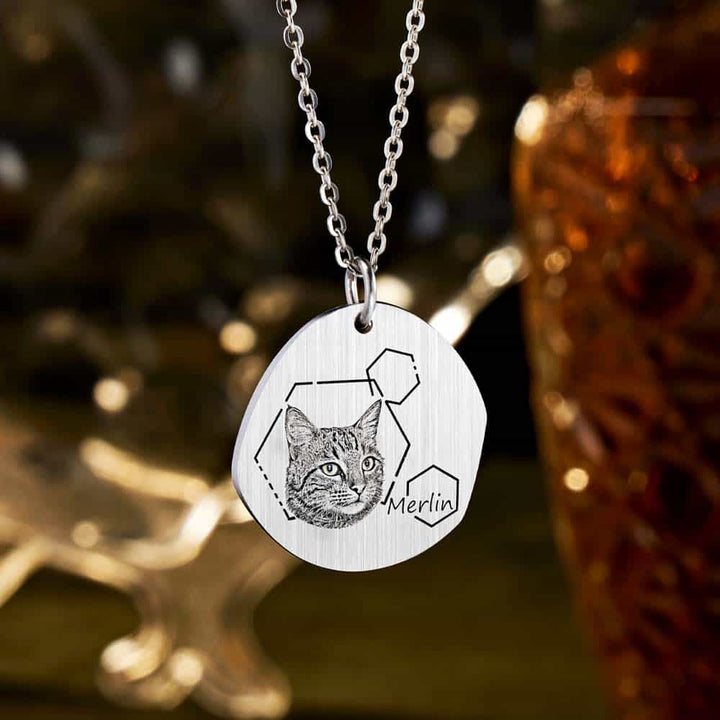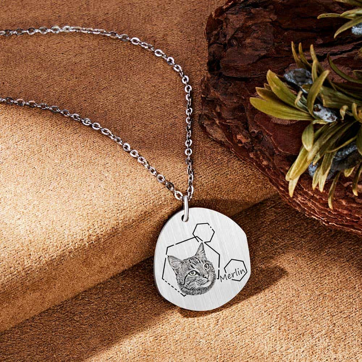 Entdecken Sie die zeitlose Eleganz unserer personalisierten Skizzen Foto Kette, die Ihre schönsten Erinnerungen in eleganter, tragbarer Form bewahrt. Die Vorderseite des Anhängers zeigt Ihr ausgewähltes Foto, fachmännisch als raffinierte Skizze eingraviert. So werden selbst kleinste Details präzise festgehalten und ein persönliches, langlebiges Andenken geschaffen.