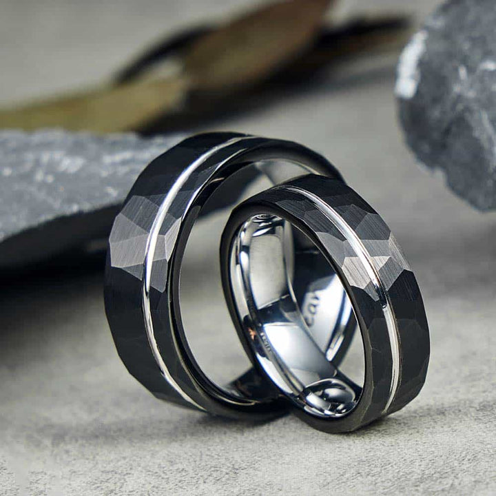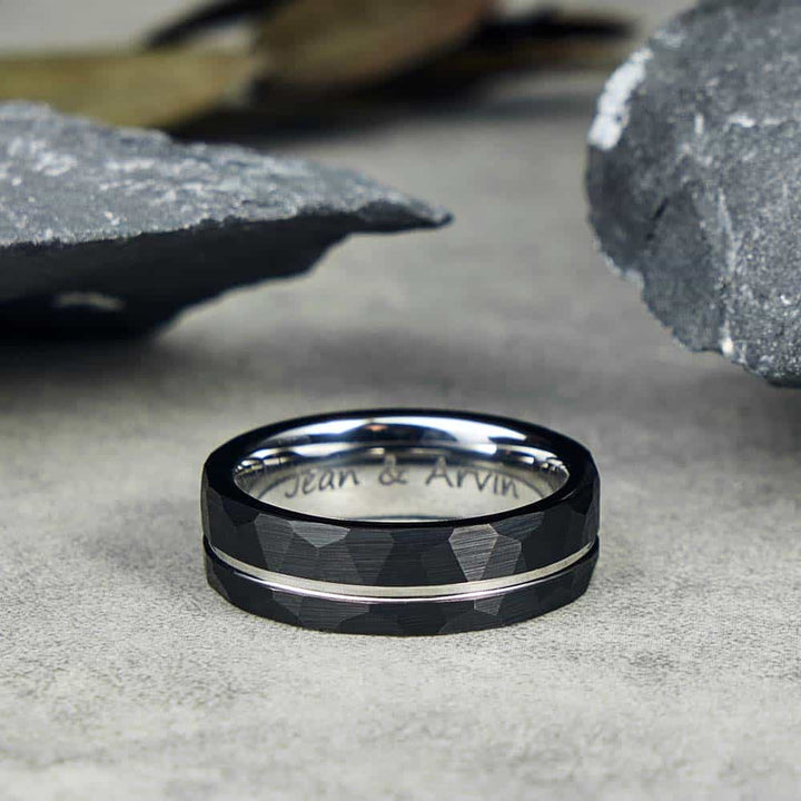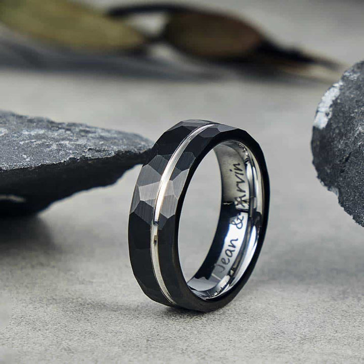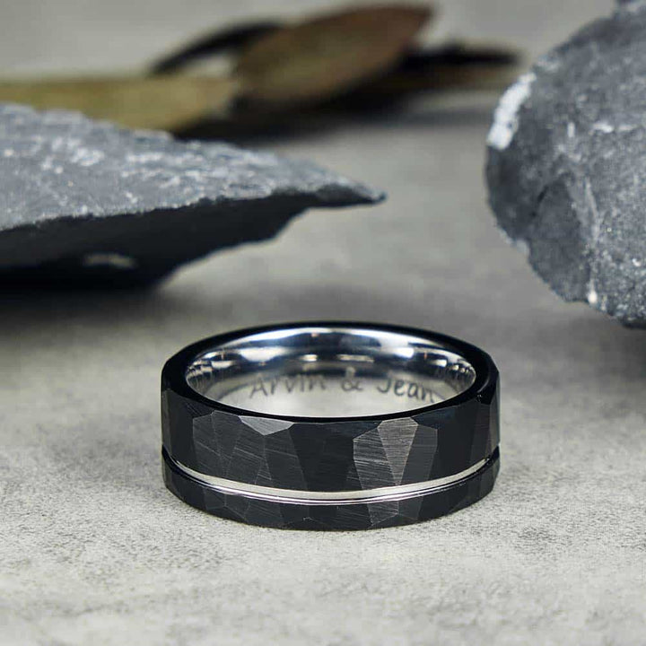 Schwarz Silber Gehämmerter Ehering aus Wolfram - Bollwerk