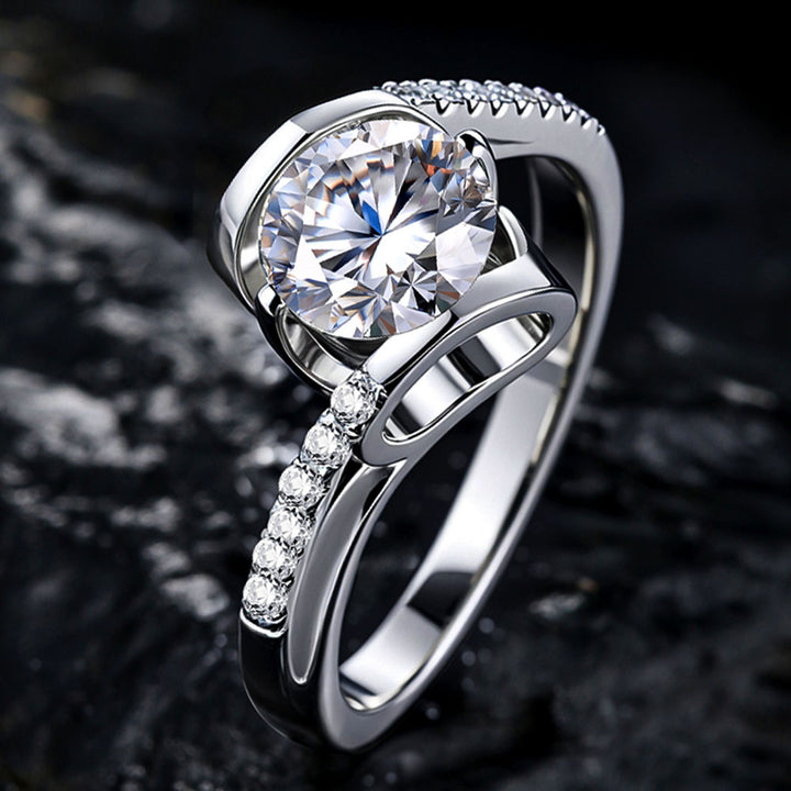 Gedenken Sie Ihrer Liebe mit unseren wunderschönen Moissanite Silber Verlobungsring. Mit unserem kostenlosen Gravurservice können Sie einen besonderen Namen, ein Datum oder eine Nachricht hinzufügen, um diesen Ring wirklich einzigartig zu machen – ein ewiges Symbol Ihrer einzigartigen Verbindung.