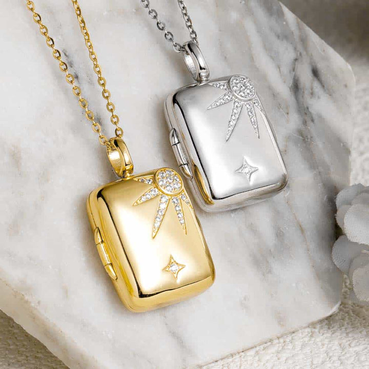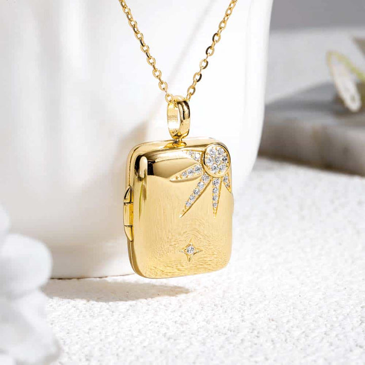 【Wasserdicht】Personalisierte Foto Medaillon Kette mit Bild - Sonne Stern