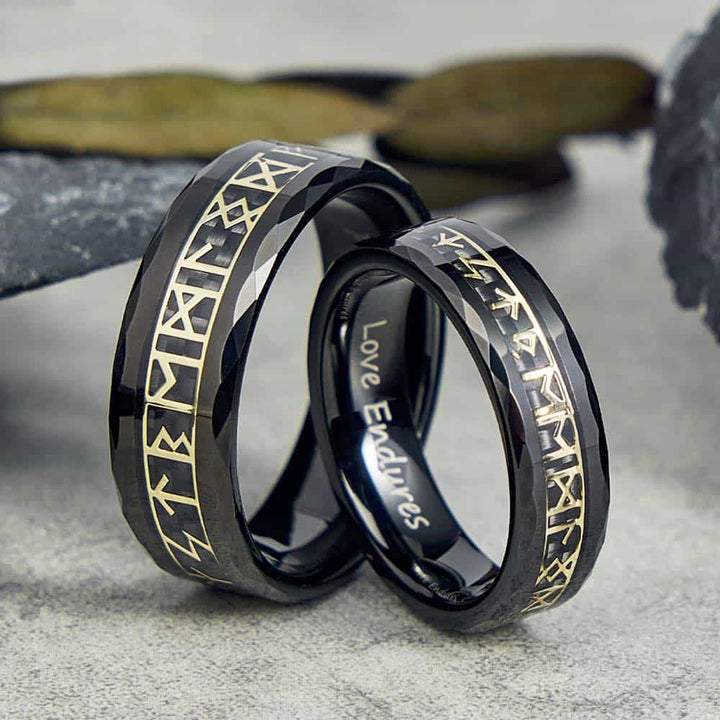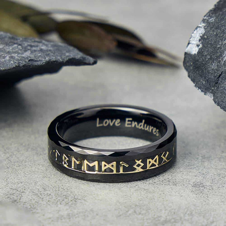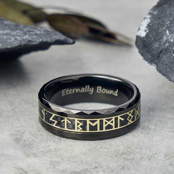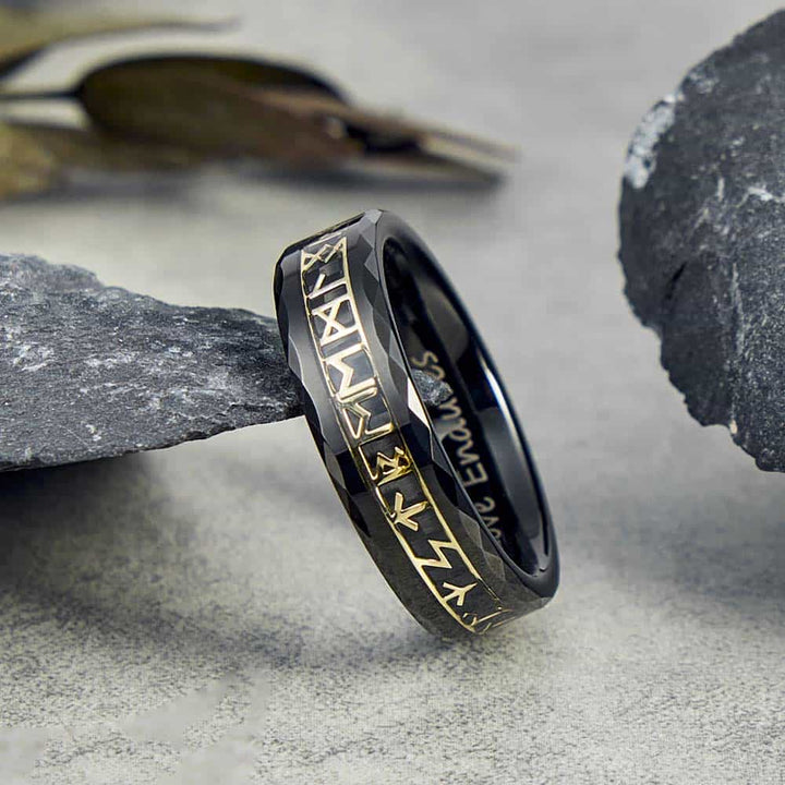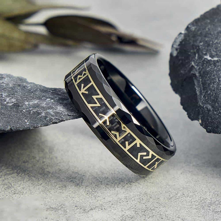 Schwarz Facetten Wikinger Wolfram Ehering mit Runen