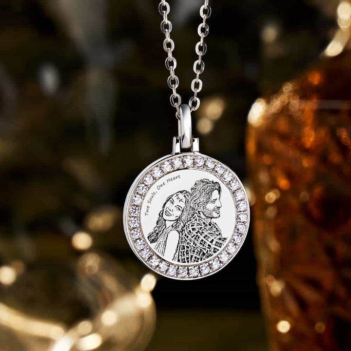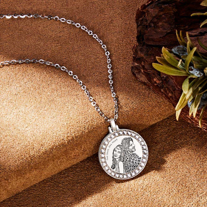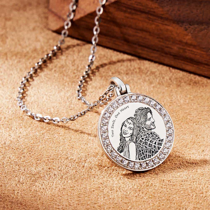 Entdecken Sie die zeitlose Eleganz unserer personalisierten Skizzen Foto Kette, die Ihre schönsten Erinnerungen in eleganter, tragbarer Form bewahrt. Die Vorderseite des Anhängers zeigt Ihr ausgewähltes Foto, fachmännisch als raffinierte Skizze eingraviert. So werden selbst kleinste Details präzise festgehalten und ein persönliches, langlebiges Andenken geschaffen.